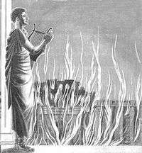 Pendant que l'incendie en fleuve ardent circule / Des temples aux palais, du Cirque au Panthéon!")