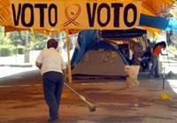Limpieza de aceras y calles, tarea cotidiana en los campamentos de la coalición Por el Bien de Todos, del Zócalo al Periférico