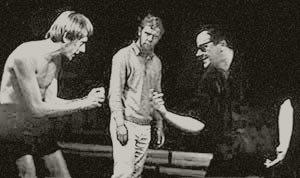 –Y sus oídos ¿cómo se sentían con la voz?, las palabras... –Bueno, la cosa es que... –¿Era impactante? –Era muy impactante porque uno no sabía polaco. Yo había leído muchas veces El príncipe constante porque muchos años he trabajado a Calderón, lo trabajé en clase. –Pero no la versión de Slowacki ¿o sí? –Pues no, yo conocía la versión, no la versión sino el original de Calderón, evidentemente lo había leído en la nueva colección, pues es un drama extraordinario. Pero Grotowski hizo una adaptación totalmente particular y además él planteaba justamente la idea del teatro pobre donde, con muy pocos elementos, con ciertos elementos, sobre todo de vestuario y con los cuerpos fundamentalmente, creaba una atmósfera. Además, esto se incrementaba como le digo por esa cosa del olor que para mí fue muy importante. Un olor penetrante. Muy impactante, porque le añadía, le daba realidad al cuerpo, que era un cuerpo muy trabajado de manera muy precisa y profunda, por esa cosa de la acrobacia, de la mímica gestual que trabajaba Grotowski con tanto cuidado que repercutía sobre todo en el sonido. Que no era un sonido coherente, era un sonido más bien gutural, porque era una representación en polaco, pero un polaco muy diluido por como lo manejaban. Creo que ni los mismos polacos entendían muy bien el texto, porque el texto estaba como... –¿Se borraba la palabra? –Se borraba la palabra y el sonido funcionaba sobre todo como orquesta yo creo... –¿Como ruidos más bien? –No. Sí un flujo de sonidos. E incrementaban el valor del cuerpo entonces, el sonido. Era este idioma muy particular, muy Grotowski, que era el polaco, pero por otro lado era un polaco que se guturalizaba profundamente, que perdía su sentido en cuanto a lo lógico, pero aumentaba su sentido en cuanto a la representación. Porque era el cuerpo, más la vestimenta, más el sudor, más el sonido. Pues todo esto, y uno sentado alrededor como espectador, pero al mismo tiempo, al tener todas esas sensaciones olfativas y auditivas, uno de alguna manera participaba en la representación, porque era una cosa muy intensa.