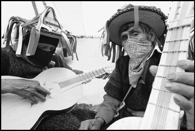 Músicos que reciben a la sociedad civil al Caracol