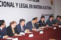 Morelia, Mich., 23 de agosto. En Michoacán, las elecciones federales y estatales se realizarán en una misma fecha, como resultado de la firma del Acuerdo Político para Elecciones Concurrentes y Reforma Electoral, que suscribieron los titulares de los poderes Ejecutivo y Legislativo, así como partidos políticos.