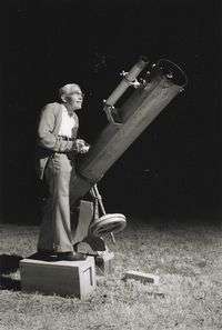 El descubridor de Plutón, Clyde Tombaugh, afuera de su casa en Las Cruces, Nuevo México, en 1980. Con un telescopio similar al que se observa en la gráfica, el científico localizó en 1930 el astro en cuestión, que ayer fue degradado a la categoría de "planeta enano"