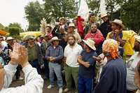 Después se les ofreció una comida en la explanada de esa demarcación para de ahí continuar el camino hasta la avenida Constituyentes, a la altura de la tercera puerta del Bosque de Chapultepec, donde decidieron pernoctar. El objetivo de dormir cerca de la residencia oficial de Los Pinos es "llevarle mañanitas, mañana (hoy) temprano, al presidente Vicente Fox".