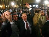 El premier iraquí, Nuri Maliki, durante una conferencia con líderes tribales. A la derecha, un empleado de un hospital cierra los ojos de un niño víctima de una emboscada contra chiítas en Baquba