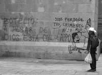 En la catedral de la ciudad de Oaxaca aparecieron varias pintas contra el arzobispo José Luis Chávez Botello