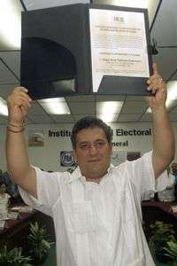 Juan Sabines Guerrero, tras recibir la constancia de gobernador electo de Chiapas que le otorgó el Instituto Estatal Electoral