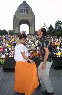 Baile regional en apoyo a la coalición Por el Bien de Todos, durante el festival cultural que se efectuó en la explanada del Monumento a la Revolución
