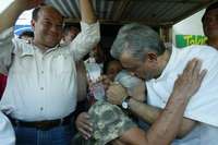 Andrés Manuel López Obrador besa a una anciana durante la gira que realizó ayer por Tabasco, para apoyar al candidato de la coalición PRD y PT a la gubernatura, César Raúl Ojeda Zubieta, quien lo acompaña
