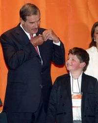 El presidente Vicente Fox se quita su pin del Escudo Nacional para obsequiarlo al niño Gabriel Rosales, a quien invitó ayer a pasar al presidium, durante la entrega de reconocimientos a la calidad en la Semana Nacional de la Industria de Software, en el salón Tolteca del World Trade Center México FOTOMaría Luisa Severiano