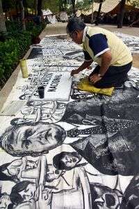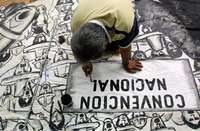 Un ciudadano hace su aportación a las manifestaciones gráficas en apoyo del candidato presidencial de la coalición Por el Bien de Todos, Andrés Manuel López Obrador, en uno de los campamentos ubicados en Paseo de la Reforma