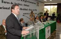 El líder nacional priísta, Mariano Palacios, en el foro de análisis y debate