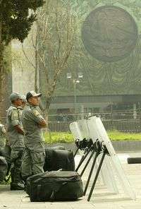 Personal del Estado Mayor Presidencial, de la Policía Federal Preventiva y de seguridad de la Cámara de Diputados resguarda el Palacio Legislativo de San Lázaro, donde se espera que el presidente Vicente Fox presente mañana su último Informe de gobierno