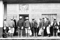 Una cuadrilla de mineros de la empresa General de Hulla esperan turno para revisión médica antes de ingresar a la mina