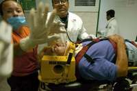 El camarógrafo Ricardo Bravo, al ser ingresado al hospital Rovirosa