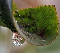 Una gota de agua se desliza por la hoja de un rosal, en un parque de Ammán, Jordania FOTOReuters