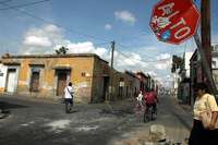 Deterioro de las calles de la ciudad de Oaxaca, saldo de las barricadas nocturnas instaladas por la APPO y el magisterio para evitar un nuevo intento de desalojo del plantón instalado en el centro histórico