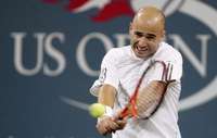 El veterano estadunidense Andre Agassi no ve la hora de retirarse y eliminó al chipriota Marcos Baghdatis en el Abierto de Estados Unidos