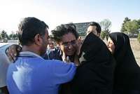 Un sobreviviente del avionazo es confortado en Machhad por miembros de su familia