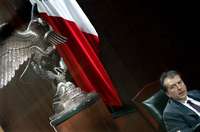 Atrás de la valla que estoy informando. Unos 40 miembros del Estado Mayor Presidencial (EMP) hacen un rectángulo de seguridad y una nubecilla de funcionarios y legisladores rodean a Vicente Fox. El Presidente baja la cabeza, habla pausado, hace tiempo. A la mitad del vestíbulo del edificio del salón de sesiones, ha llegado el mandatario sin honores protocolarios y tras surcar el más enorme cerco policiaco militar al Congreso de la historia reciente. El último y se va, muy lejos del Fox de los primeros años ante el Congreso, aquel Fox socarrón y retador.