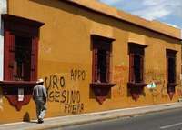 En los edificios coloniales, en el Centro Histórico de la ciudad Oaxaca, se conservan las consignas en contra del gobernador Ulises Ruiz