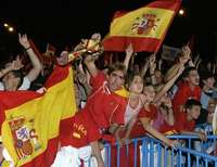 Simpatizantes españoles esperan la llegada del equipo nacional a la plaza de Castilla, en Madrid, después que ganó a Grecia el Campeonato Mundial de Basquetbol 70-47 * Ap
