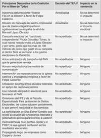 Durante la sesión del Tribunal Electoral del Poder Judicial de la Federación (TEPJF) los siete magistrados fijaron su postura, invariablemente, en favor del dictamen en el cual, si bien asumieron las irregularidades, también cuestionaron la estrategia política y legal de la coalición Por el Bien de Todos y su candidato, Andrés Manuel López Obrador.
