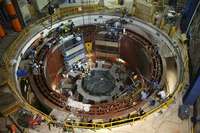Santa María del Oro, Nayarit, 5 de septiembre. La central hidroeléctrica de la presa El Cajón -la segunda más grande del país después de la de Chicoasén-, quedará concluida y comenzará a operar el 15 de noviembre de este año, tres meses antes de lo previsto, con la puesta en marcha de la primera de dos unidades generadoras de electricidad con capacidad de 375 megavatios cada una.
