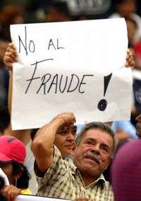En nombre de organizaciones sociales simpatizantes de López Obrador, Félix Moreno Peralta, dirigente de la Coordinadora Estatal de Trabajadores de la Educación, afirmó que "hubo una elección de Estado donde se torció la democracia, por eso no podemos reconocer a Calderón, porque llegó mediante el fraude; realmente es una tragedia nacional".