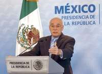 Rubén Aguilar, coordinador general de Comunicación Social y vocero de la Presidencia de la República, en conferencia de prensa en el salón Venustiano Carranza de la residencia oficial de Los Pinos