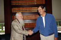El presidente Vicente Fox recibió a Robert J. Aumann, premio Nobel de Economía 2005, en la biblioteca José Vasconcelos de la residencia oficial de Los Pinos