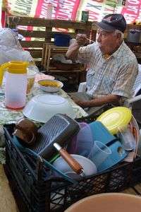 Durante la hora del almuerzo en el plantón de simpatizantes de la coalición Por el Bien de Todos
