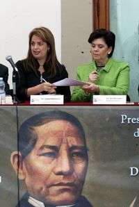Ayer se firmó el convenio de donación de la colección Juárez, documentos, discursos y correspondencia, en el castillo de Chapultepe. En la imagen, la diputada Lorena Villavicencio y la directora del CNCA, Sari Bermúdez