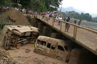 Puebla, Pue., 7 de septiembre. Al menos cuatro personas, entre ellas un niño de año y medio de edad, perecieron cuando un alud en el cerro de Necaxatépetl, en el municipio de Juan Galindo, arrojó a una barranca dos microbuses, un camión de pasajeros, dos pipas y una camioneta que transitaban por el kilómetro 106 de la carretera México-Tuxpan. Las autoridades no descartan que el número de víctimas pueda aumentar.