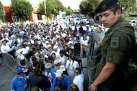 Pero en lo que está por venir, el acto de ayer no dejaba lugar a dudas para los malos augurios: 30 mil personas -¿será un récord?- pasaron rigurosamente por arcos detectores de metales y una a una sus bolsas fueron revisadas, pues así lo advertían grandes mantas colocadas cerca de las puertas del coso.
