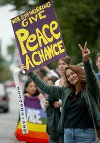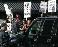 Al conmemorarse ayer el quinto aniversario de los atentados del 11-S se llevaron a cabo protestas contra la guerra, una se desarrolló en la ciudad de Baltimore, y otra en la ciudad canadiense de Halifax (imagen derecha), al paso del automóvil que transportaba a la secretaria de Estado estadunidense, Condoleezza Rice, quien llegó para agradecer al gobierno de Canadá el haber recibido todos los vuelos desviados a ese país el día de los ataques contra Nueva York y Washington en 2001