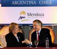Ampliar la imagen Los presidentes de Chile y Argentina, Michelle Bachelet y Néstor Kirchner, respectivamente, dieron el banderazo de salida al proyecto que volverá a unir a ambos países por ferrocarril, en un acto que intentó reconciliar a los gobiernos, luego de tres meses de tironeos por conflictos energéticos. El ferrocarril atravesará la Cordillera de los Andes Foto: Reuters