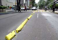Aspecto del deterioro de las vallas del carril confinado del Metrobús, en la avenida Insurgentes