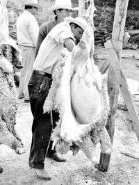 TODOS SABEMOS COMO se hace una barbacoa comestible mexicana: un hoyo en el suelo; en el fondo del hoyo un pequeño infierno; sobre él una "barbacoa", y en ésta un cabro hecho pedazos y un estómago relleno de sus vísceras envueltos en hojas de maguey. Cuando está listo, debe deshacerse en la boca. Se come con tortillas y una salsa emborrachada de pulque. Con los huesos se hace un consomé. Nada que ver con la deliciosa barbecue o BBQ gringa. (En inglés de Estados Unidos, desde el principio del siglo XVIII, barbecue es también una fiesta "generalmente al aire libre, en que se asan animales enteros y se dan otras provisiones libremente". El Oxford cita un pasaje de Knickerbocker's history of New York: a great 'barbecue', a kind of festivity or carouse much practised in Merryland. God and the fifties, el poema de Di Cicco, dice con un principio de nostalgia -después trastornada en otra cosa- que los años 50 eran tiempos de "tomarse en serio Peyton Place", de golfito miniatura, de esprái para el pelo, del olor de la noche en el coche estacionado, "of barbecuing with the mob on Chesapeake Bay". Ojo: las más inquietantes e intensas barbecues de la televisión no están en Los años maravillosos o Los Simpson, sino en Los Soprano.) El jefe Steingarten apunta: "La parrillada casera (que casi todo el mundo fuera del Sur llama "barbecue") implica cocinar velozmente sobre un calor intenso y seco. La barbacoa de veras no tiene nada que ver con eso: la barbacoa de veras es una cocción lenta, encerrada, a temperaturas gentiles, al humo, húmedo, de mezquite. A un cerdo entero le lleva normalmente 24 horas cocinarse; a una paleta de cerdo entre 12 y 14 horas, las costillas entre cinco y seis... En la parrillada la carne suele quedar medio roja, jugosa. La barbacoa de veras siempre está bien cocida. Cualquier rastro de sangre o de grasa no disuelta es un error muy grave. Todo el tejido tiene que haberse fundido. La carne debe separarse limpiamente del hueso y deshebrarse en tiras largas, húmedas. La barbacoa de veras nunca chisporrotea".