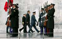 Con la misma infraestructura que utilizó minutos antes el presidente Vicente Fox, Felipe Calderón Hinojosa, mandatario electo, rindió homenaje a los Niños Héroes y aprovechó para llamar de nuevo a la unidad.