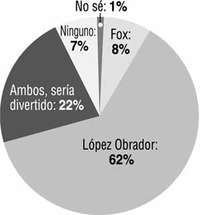 Ayer después del mediodía la Secretaría de Gobernación anunció que el presidente Fox había desistido de su propósito de dar el Grito de Independencia en el balcón central de Palacio Nacional. Lo hará en Dolores Hidalgo, como en el pasado lo hicieron algunos mandatarios priístas en situaciones de excepción. Por otro lado, se anunció que en la Plaza de la Constitución el Grito lo dará el jefe de Gobierno del Distrito Federal, Alejandro Encinas, acompañado por el secretario de Gobernación, Carlos Abascal. La decisión presidencial coincide con los resultados de nuestra antiencuesta de esta semana (ver gráfica): sólo 8 por ciento de 3 mil 256 personas contestaron que Fox debería dar el Grito en la capital; 62 por ciento respondió que López Obrador, y 22 por ciento se manifestó por la opción ''ambos, sería divertido''.