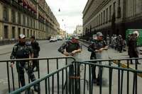 Ampliar la imagen Elementos de la PFP vigilan a un costado del Palacio Nacional FOTOJosé Carlo González