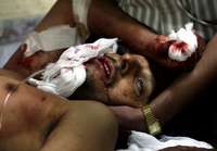 Un iraquí herido por el estallido de un coche bomba recibe atención médica en un hospital de Bagdad
