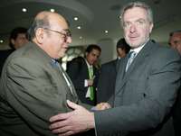 El obispo Samuel Ruiz y el panista Santiago Creel, luego de la reunión en el Senado