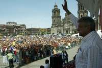 El otro grito, surgido de la multitud reunida en la Plaza de la Constitución, anoche fue "¡Obrador, Obrador, Obrador!".