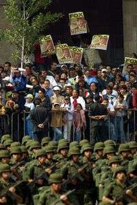 En el último desfile militar que presidió Vicente Fox, el Zócalo capitalino se convirtió en un "campo de batalla": por un lado, decenas de simpatizantes de Andrés Manuel López Obrador gritaban "¡Obrador, Obrador!" y, por el otro, dos bandas militares tocaban ininterrumpidamente. Los manifestantes con trompetas de cartón lograron por momentos hacer escuchar el "ta, ta, ta, ta, ta..." entre los acordes de la música. Las bandas se ubicaron estratégicamente frente del balcón presidencial de Palacio Nacional.