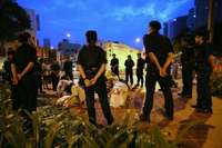 Policías de Singapur impiden la realización de una marcha de protesta hacia el edificio sede de la reunión anual del FMI y el Banco Mundial