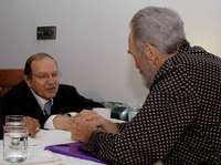 El presidente cubano se reunió con su homólogo argelino, Abdelaziz Buteflika. A la derecha, Raúl Castro, gobernante provisional de Cuba, en compañía de un nieto, durante la sesión plenaria de la cumbre del Movimiento de Países no Alineados