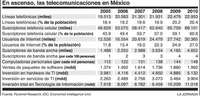 El importante aumento de las suscripciones de telefonía celular, sustentado también en ese incremento de ingresos y un mercado liberalizado, provocará que el índice de penetración se eleve a 61% de la población hacia finales de 2010 (aunque permanecerá por debajo de Argentina, Brasil y Chile). En líneas fijas, la penetración crecerá más despacio, apenas por arriba de 20% de la población para fines de 2010, ante el nulo avance de las reformas que deberían mejorar el nivel de cumplimiento de la normatividad y abrir el sector a una mayor participación y competencia.