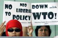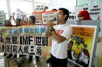 Aspecto de las manifestaciones de ayer en Hong Kong contra el FMI, el Banco Mundial y la Organización Mundial de Comercio