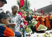 El jefe de Gobierno electo del Distrito Federal, Marcelo Ebrard; brigadas de rescatistas; familiares y amigos de víctimas montaron una guardia de honor en el 21 aniversario de los sismos de 1985, en la Plaza de la Solidaridad, en avenida Juárez y Balderas, Centro Histórico